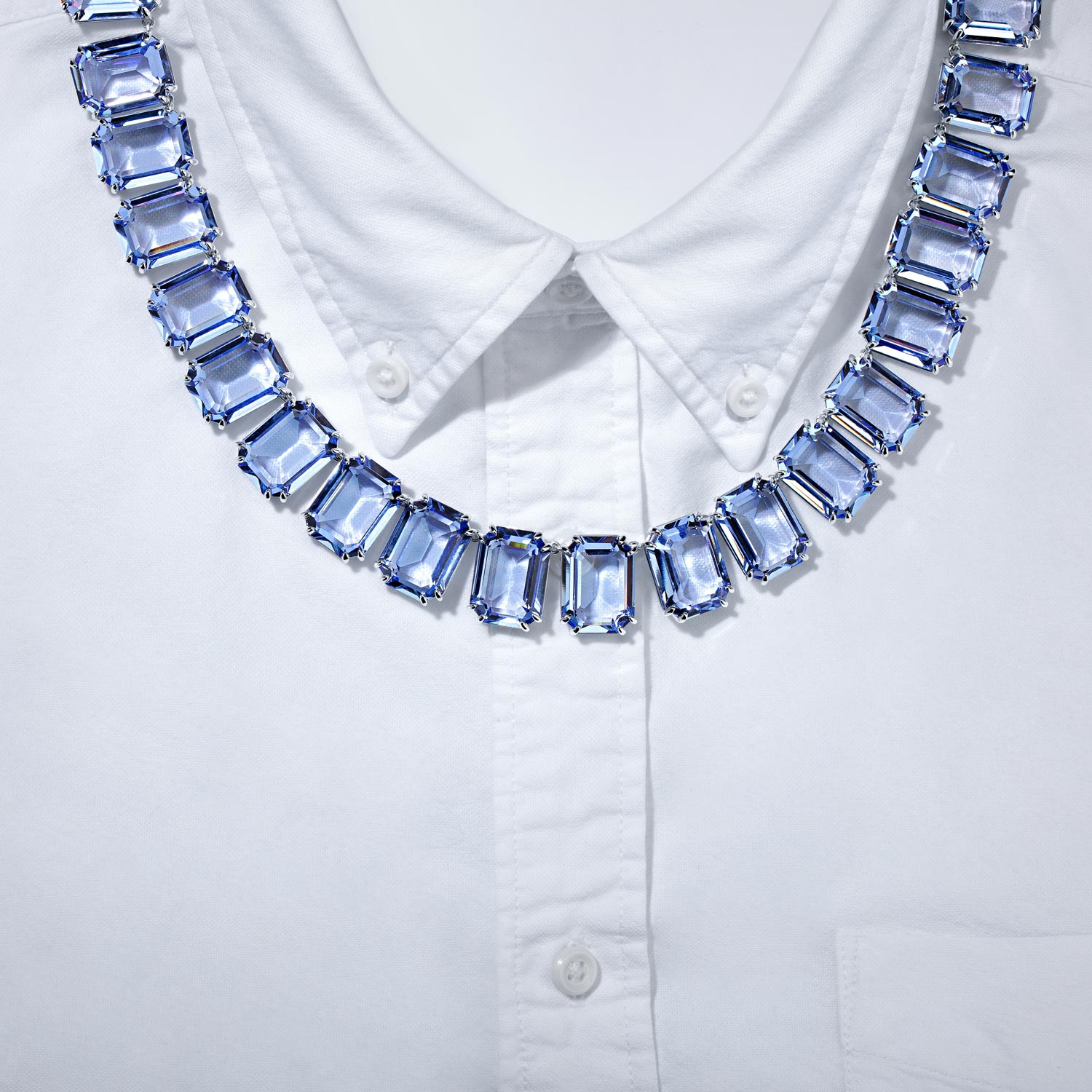 Это колье Millenia украшенное рядом синих кристаллов восьмиугольной огранки, закрепленных в оправе с родиевым покрытием, имеет тонкую потайную застежку, обеспечивающую бесшовную отделку. Дополнительная вставка дает возможность добавить или убрать длину. Подарите новую жизнь простой белой футболке и джинсам, добавив это ожерелье в качестве завершающего акцента.