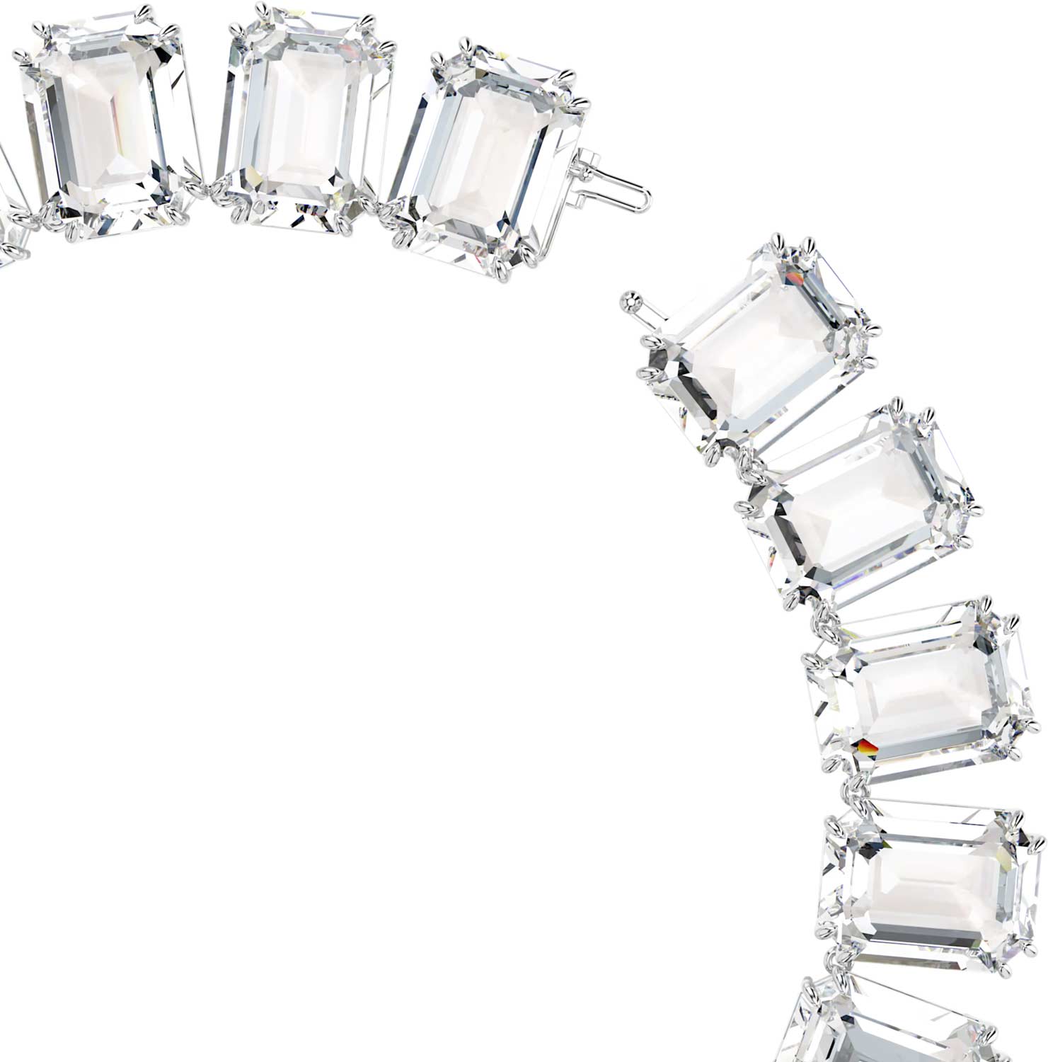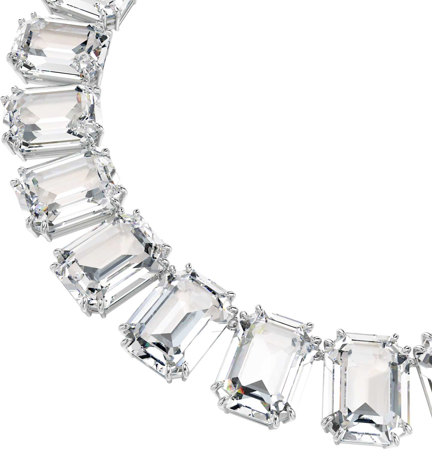 Заметное колье-чокер Millenia состоит из прозрачных кристаллов восьмиугольной огранки на закрепке с родиевым покрытием. Скрытая застежка. Регулируемая длина.