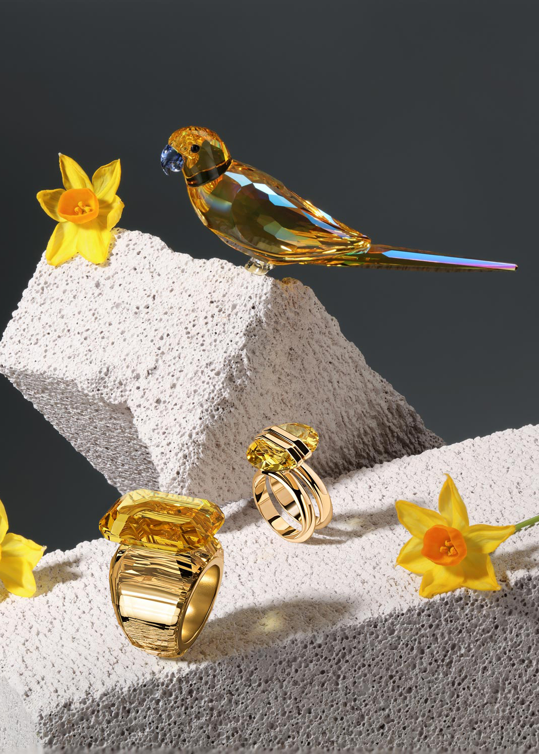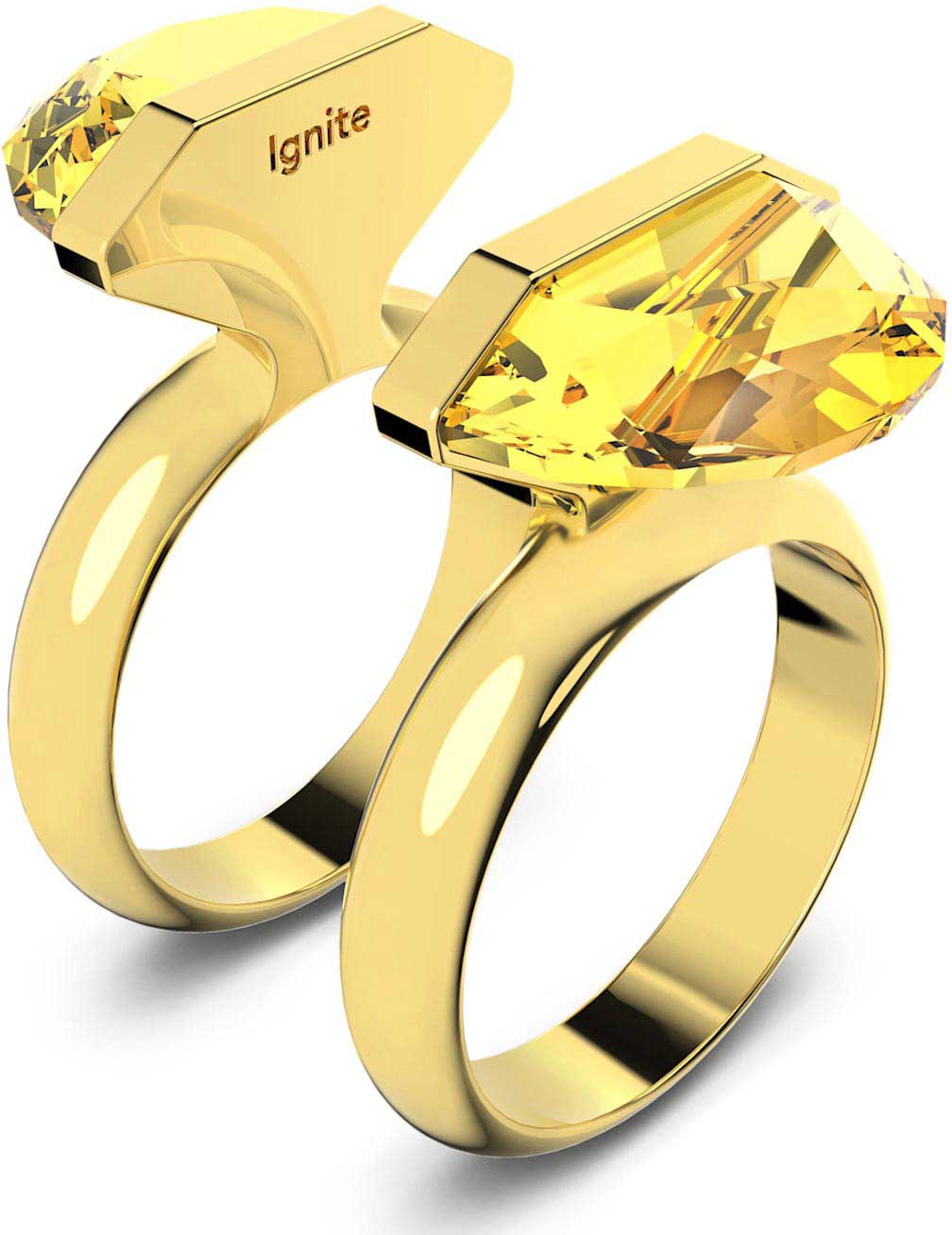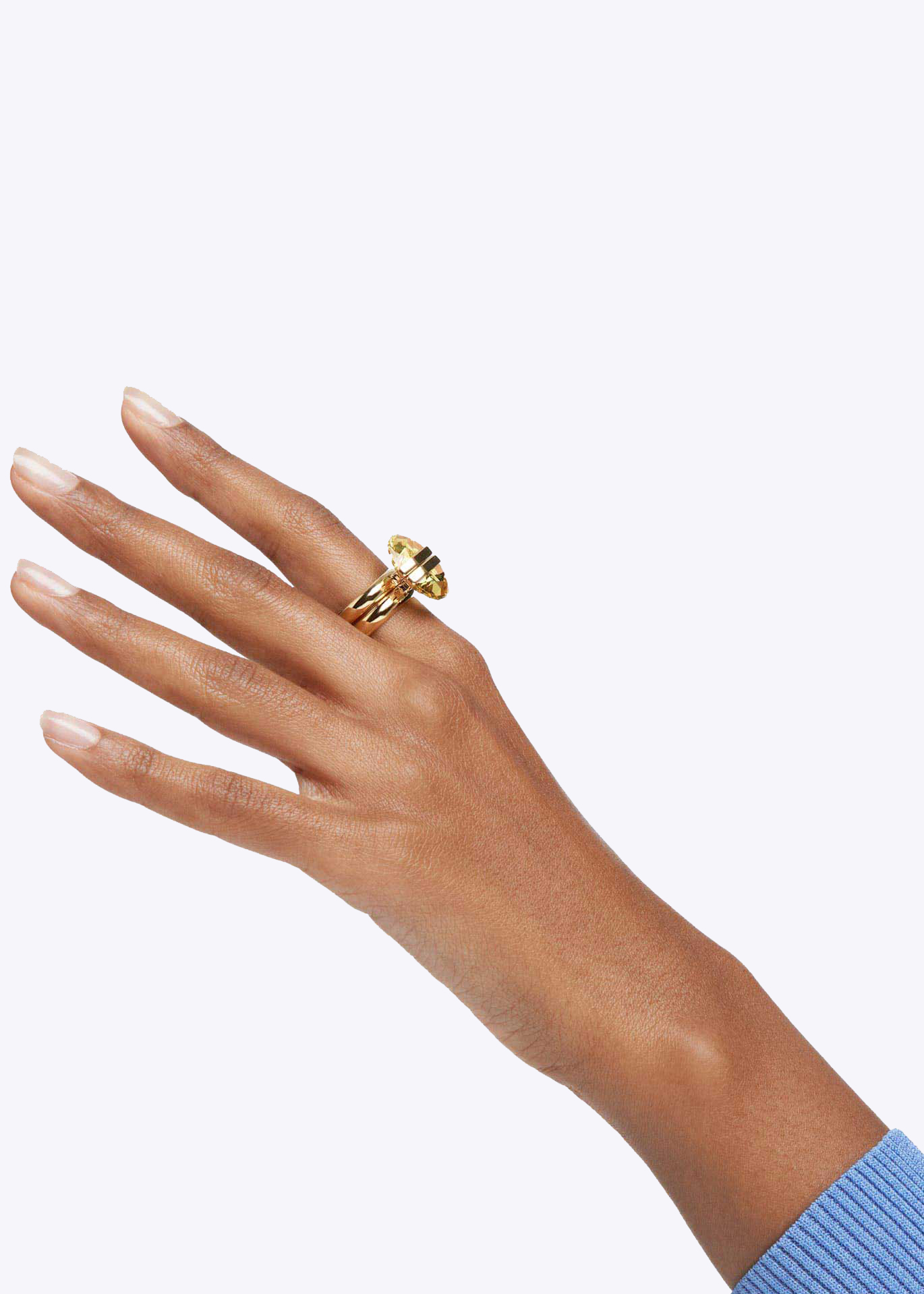 Эффектное кольцо из коллекции Lucent, покрытое желтым золотом, состоящее из двух колец с яркими желтыми кристаллами Swarovski, сделает ваш образ таким же ярким и запоминающимся.