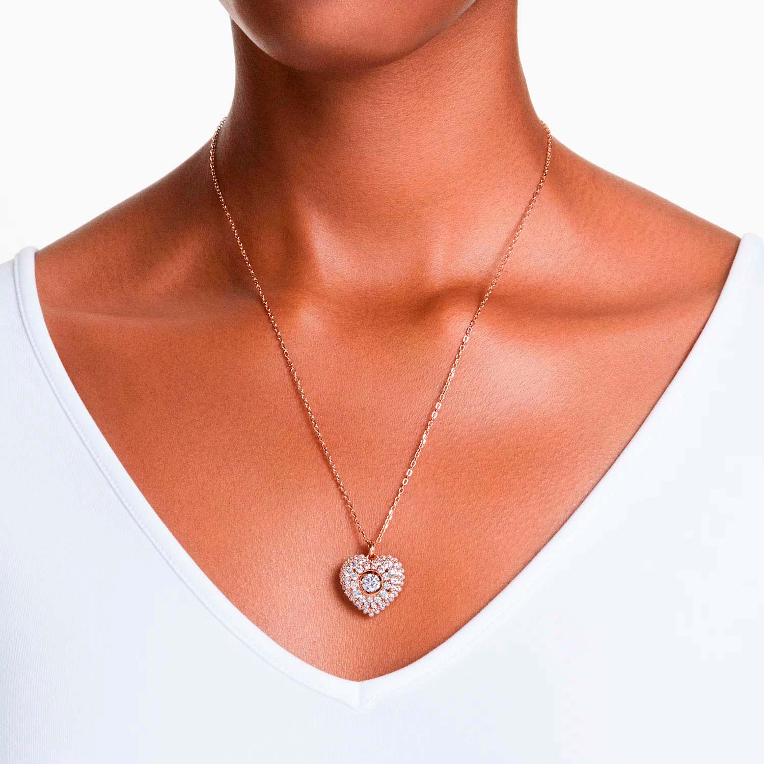 Очаровательный кулон в форме сердца из коллекции Idyllia - воплощение изысканного мастерства Swarovski. Сердце с покрытием розового золота украшено белыми кристальными жемчужинами по краям, кристаллами круглой огранки, закрепленными техникой ''шатон'' и центральным восьмиугольным ''танцующим'' кристаллом, который ловит свет со всех сторон. Этот романтичный аксессуар добавит романтики и блеска в ваш образ. В комплекте цепочка с регулируемой длиной. Застежка - карабин.